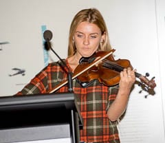 The exhibit was officially opened by the Dutch consul Willem Cosijn following  a rendering of the theme from Schindler’s List by Ashleigh Vissel on her great-grandfather’s violin. Her grandfather, Dutch-born Jozef Vissel, regained his father’s violin on a visit to the Netherlands where he had lived in an orphanage as a child and adolescent. Vissel, a renowned photographer responsible for the iconic image of Sydney Opera House architect