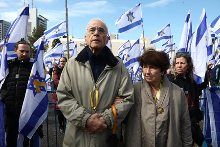 Israelis in Tel Aviv’s Hostage Square pay their final respects as four captives return home on Feb. 20, 2025. Photo by Gideon Markowicz/TPS-IL