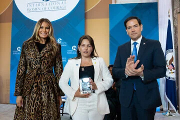 First Lady Melania Trump and U.S. Secretary of State Marco Rubio honour the freed hostage Amit Soussana at the International Women of Courage Award at the State Department, April 1, 2025. Credit: Andrea Hanks/White House