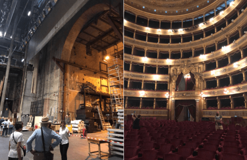 Front of house and backstage of Teatro Massimo – the Palermo Opera House.