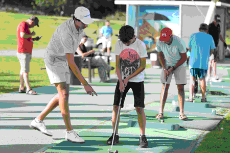 Max Margolis teaches victims of terrorism how to play golf. The Caesarea Golf Club, Sept. 15, 2024. Credit: Meir Pavlovsky.