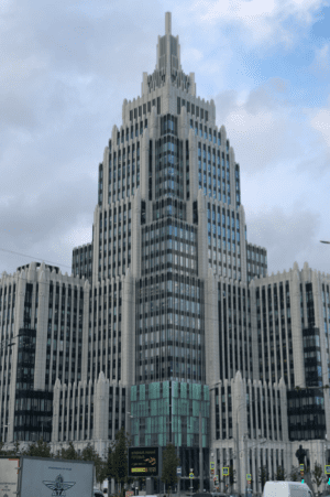 Because we are members of the Intercontinental Ambassador’s Club, we get an automatic upgrade when we book a room. Since we were only staying one night on this leg of the odyssey, we booked an entry-level room with the expectation we would ladder up one notch. Instead, we went up like a Saturn rocket and finished on floor 11 with a Cinemascope view of Moscow from a massive suite with two bathrooms, three TVs (one to view from the bath), two toilets, drawers to burn, and a lounge with club-worthy couches and a partners’ desk. We expected a knock on the door and a family of 10 claiming shared occupancy.