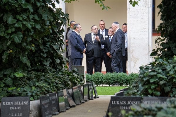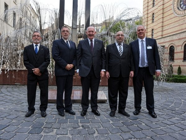 He was welcomed by András Heisler MAZSIHISZ president and by Dr. Róbert Frölich chief-rabbi of Hungary. After visiting the Dohány Street synagogue Sir Cosgrove put a stone of remembrance at the Emanuel Tree in memory of the six-hundred thousand Hungarian Jewish martyrs of the holocaust. In his speech Sir Cosgrove welcomed the Hungarian Jewish people with warm words.