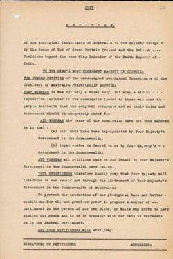 Mrs Miller said “The petition was not sent to the King by the Australian cabinet because Aborigines were British subjects but not Australian citizens. From that disappointment sprang the Day of Mourning on the 150th anniversary of white settlement held in Sydney on 26 January 1938 led by Cooper and others, Aboriginal Sunday, initiated by Cooper in 1940 which evolved into NAIDOC and the campaign for the 1967 referendum for Aborigines to be counted in the census led by Cooper’s nephew Ps Sir Doug Nicholls and others.”