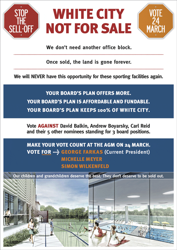 The Hakoah Board has its say about White City…