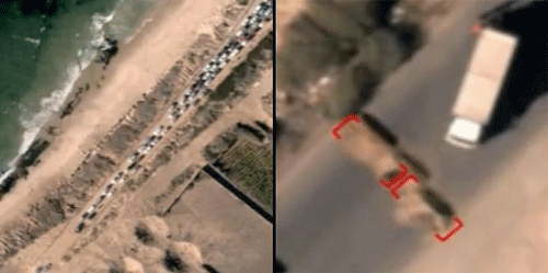 Hamas roadblocks and resulting traffic jams as Palestinians try to evacuate the northern Gaza Strip on Oct. 14, 2023. Photos by the IDF
