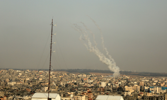 Smoke seen as a rocket is launched from Rafah, in the southern Gaza Strip, towards Israel on May 10, 2021. Photo by Atia Mohammed/Flash90
