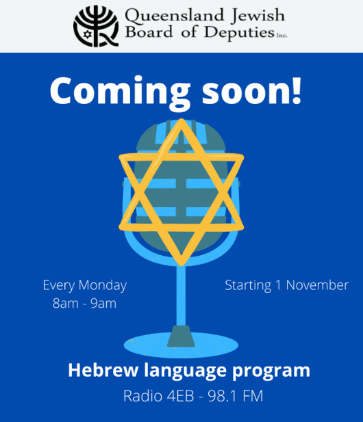 The Queensland Jewish Board of Deputies and State Zionist Council of Queensland are to launch a Hebrew language program on Radio 4EB to be broadcast from coast to coast.