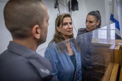 Professor Nadera Shalhoub-Kevorkian, who was arrested on suspicion of incitement, arrives for a court hearing at the Jerusalem Magistrate’s Court, April 19, 2024. Photo by Chaim Goldberg/Flash90.