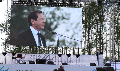 Herzog led this year’s International March of the Living as the senior Israeli representative, along with other representatives from around the world, including U.S. Ambassador to Israel David Friedman, Ambassador of Israel to the United Nations Danny Danon, Bartholomew I, Archbishop of Constantinople and Ecumenical Patriarch, Romanian Prime Minister Viorica Dăncilă and Speaker of the Greek Parliament Nikos Voutsis.