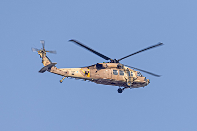 An Israeli Air Force Blackhawk helicopter in the skies over Haifa on Oct. 31, 2024. Photo by Anthony Hershko/TPS-IL