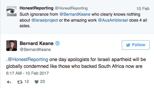 This isn’t the first time that Keane has tweeted the claim that Israel is an apartheid state. Perhaps Crikey wants to be seen as a radical news outlet that throws false apartheid charges at Israel. Yet, Crikey claims to be a serious and credible source of news and information and “aims to be fair and open in its journalism. It does not seek to be malicious…”