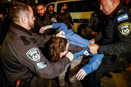 Police clash with demonstrators during a protest for the release of Israeli hostages held in the Gaza Strip and against the current Israeli government in Jerusalem, March 30, 2024. Photo by Chaim Goldberg/Flash90.