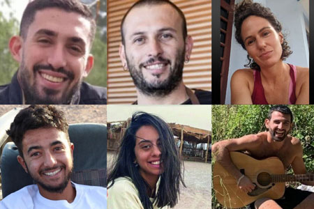 The six Israeli hostages recovered on Aug. 31, 2024. Clockwise from top left: Ori Danino, Alex Labonov, Carmet Gat, Almog Sarusi, Eden Yerushalmi, and Hersch Goldberg-Polin. Photos courtesy the families.