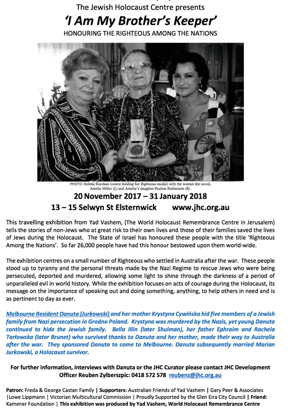 An exhibition is to be launched at Melbourne’s Jewish Holocaust Centre honouring Australian immigrants who saved Jews during the Holocaust.