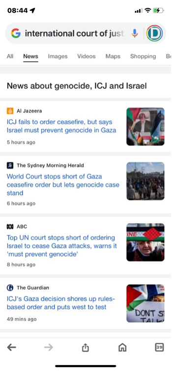 A Google News search of “International Court of Justice” shows 150,000 results headed by: