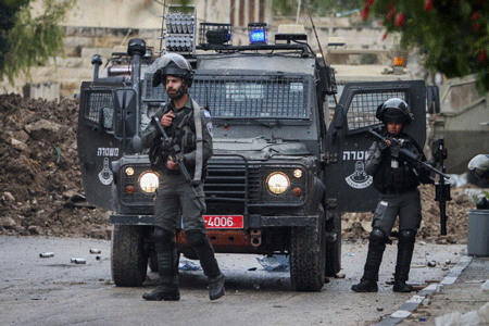 Israeli soldiers stand guard near the village of Burqah on December 23. Photo by Nasser Ishtayeh/Flash90