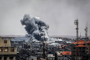 Israeli Air Forces strikes in Khan Yunis as seen from Rafah in the southernmost Gaza Strip, May 6, 2024. Photo by Abed Rahim Khatib/Flash90.