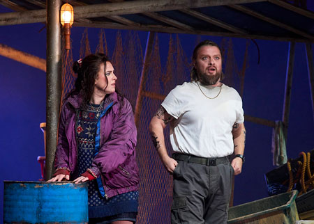 Olivia Cranwell as Giorgetta and Viktor Antipenko as Luigi in Tabarro (Il Trittico).               Photo Credit: Keith Saunders.