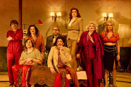 Simon Meadows as Gianni Schicchi, Alexander Hargreaves as Marco, Richard Anderson as Simone, Jane Ede as Nella, Adele Johnston as Zita, Angela Hogan as La Ciesca, David Parkin as Betto di Signa, and Kanen Breen as Gherardo in Gianni Schicchi (Il Trittico).