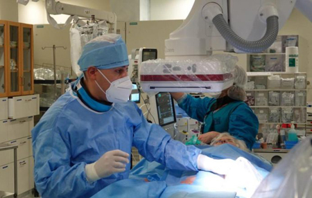 The operation was performed using a new Israeli development, a tiny knife a few millimetres in size that is inserted into through a catheter and allows surgery to be performed without stopping the heart’s activity.