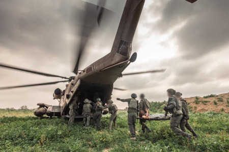 Israeli forces in the Gaza Strip evacuate an injured soldier in an undated photo released on Oct. 27, 2025. Photo by IDF Spokesperson/TPS-IL