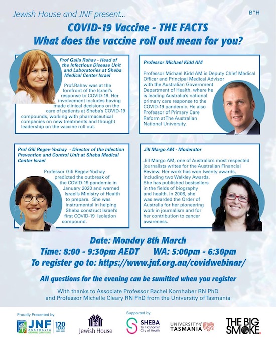 Jewish House has partnered with JNF to bring together international & local health experts for an upcoming 90-minute webinar discussing the COVID-19 vaccine rollout later this month.