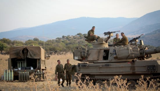 Israeli army forces seen stationed near the border between Israel and Lebanon in the Golan Heights on July 27, 2020. Photo by David Cohen/Flash90