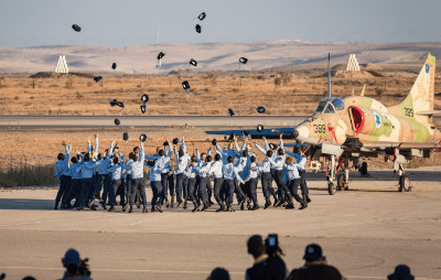 A graduation ceremony for soldiers who have completed the IAF flight course, at the Hatzerim Air Base in the Negev desert, June 27, 2019. Photo by Mila Aviv/Flash90.