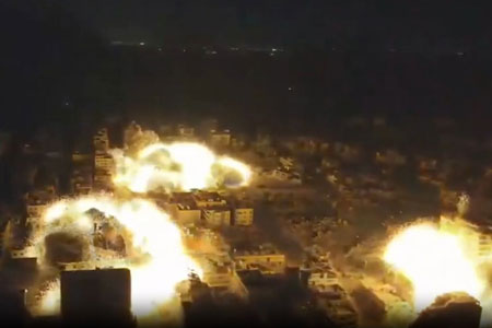 Israeli forces demolish a network of tunnels under and around the Rantisi Hospital in northern Gaza on Dec. 27, 2023. Screenshot via IDF Spokesperson