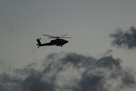 An Israeli Air Force helicopter near the border with Lebanon, Oct. 17, 2024. Photo by Ayal Margolin/Flash90.