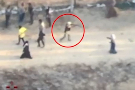 Aerial footage of a Palestinian gunman firing on Palestinian civilians near a humanitarian aid distribution point near Khan Yunis on June 1, 2025. Photo by IDF Spokesperson/TPS-IL