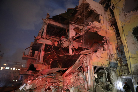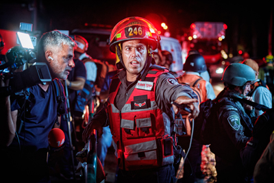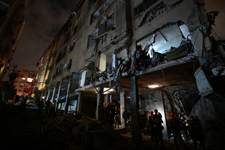 Emergency responders are at the scene of a collapsed building in the Tel Aviv metropolitan area rescuing trapped people.