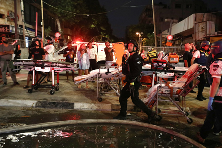 MDA (Magen David Adom) paramedics on the scene of the attacks declared the deaths of three women aged 80, 60 and 50, a young man aged 20, a boy aged 10 and a girl aged 8 whose bodies were uncovered in the rubble of a building in Bat Yam that was struck by a missile.