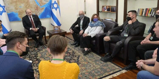 Israeli Prime Minister Naftali Bennett met with participants in the Masa Israel Journey program from Ukraine at the Defense Ministry headquarters in Tel Aviv on Tuesday.