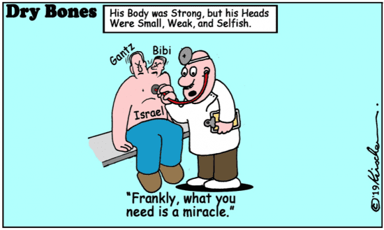Author’s note: The cartoon – commissioned exclusively for this article—is by Yaakov Kirschen aka “Dry Bones”- one of Israel’s foremost political and social commentators – whose cartoons have graced the columns of Israeli and international media publications for decades. His cartoons can be viewed at Drybonesblog.