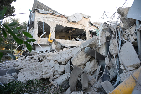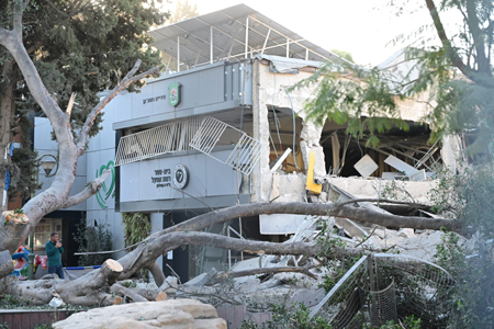 A schoolyard in the Israeli city of Ramat Gan damaged by falling fragments from an intercepted ballistic missile fired by Iran-backed Houthis in Yemen on Dec. 19, 2024. Photo by Yossi Zeliger/TPS-IL