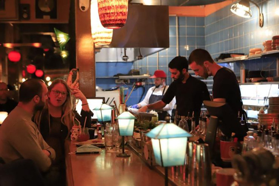 Packed bar in the city of Givatayim as Israel reopens its economy almost completely following an improvement of the Coronavirus pandemic situation. Givatayim, Mar 15, 2021. Photo by Eitan Elhadez-Barak/TPS