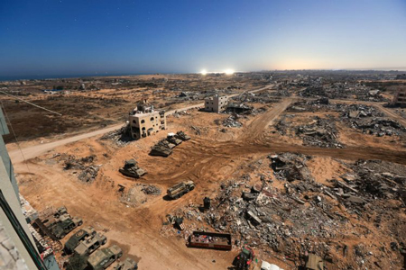 An aerial view of the Netzarim Corridor in the central Gaza area of Nuseirat on Jan. 13, 2025. Photo by Elad Zagman/TPS-IL