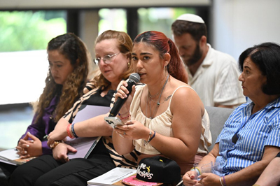 Former hostage Ilana Gritzewsky talks about being sexually abused by Hamas during a ceremony at the Israeli President’s residence in Jerusalem on July 8, 2025. Photo by Yoav Dudkevitch/TPS-IL