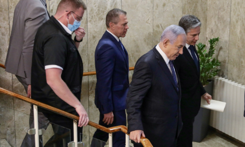 Prime Minister Benjamin Netanyahu meets with U.S. Secretary of State Anthony Blinken at the Prime Minister’s Office in Jerusalem, on May 25, 2021. Photo by Marc Israel Sellem/POOL