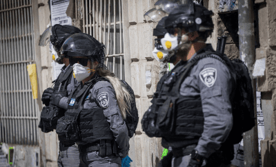 Israeli police officers enter the ultra-Orthodox Jewish neighbourhood of Me’a Shearim in Jerusalem, closing shops and dispersing public gatherings as part of the country’s efforts to stem the spread of the coronavirus pandemic, March 24, 2020. Photo by Yonatan Sindel/Flash90.