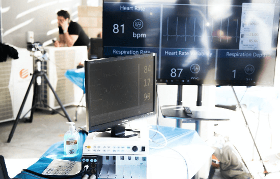 Within seconds, the system, which also includes an advanced thermal camera for detecting fever, can deliver an alert (though not a final diagnosis) to medical teams of an indication of a possible COVID-19 patient.