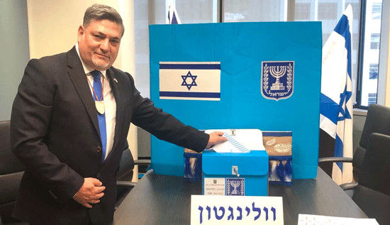 Ambassador Ran Yaakoby casts the first vote in the Israeli election