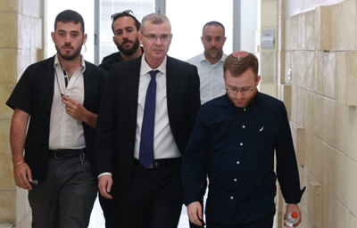 Minister of Justice Yariv Levin arrives at the District Court in Jerusalem to testify in the 2000 case in the trial against Prime Minister Binyamin Netanyahu which resumes today. Jerusalem, May 21, 2024. Photo by Elad Zagman/TPS