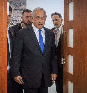 Former Israeli prime minister Benjamin Netanyahu arrives for a court hearing at the District Court in Jerusalem on May 11, 2022. Photo by Yonatan Sindel/Flash90