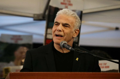 Opposition leader Yair Lapid at a Tel Aviv rally for Israeli hostages on Jan. 14, 2024. Photo by Gideon Markowicz/TPS
