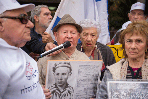 Holocaust survivors protest Poland’s Holocaust restitution law in front of the Polish embassy in Tel Aviv, Feb. 08, 2018. Photo by Kobi Richter/TPS
