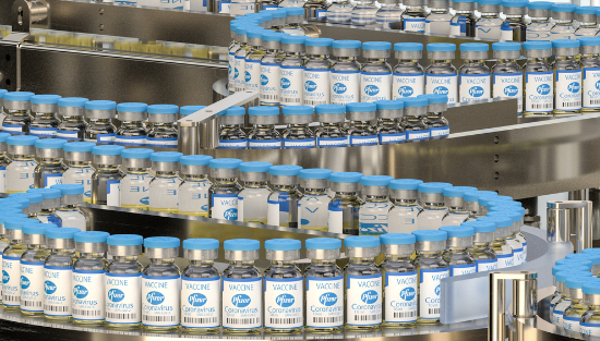 Pfizer’s COVID-19 vaccine on the production line. Credit: Mike Mareen/Shutterstock
