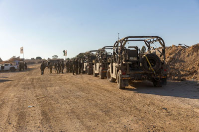 Israeli soldiers patrol the Netzarim Corridor in Gaza. The corridor divides the Strip, preventing terrorists from crossing between Gaza’s northern and southern areas. Photo by TPS-IL